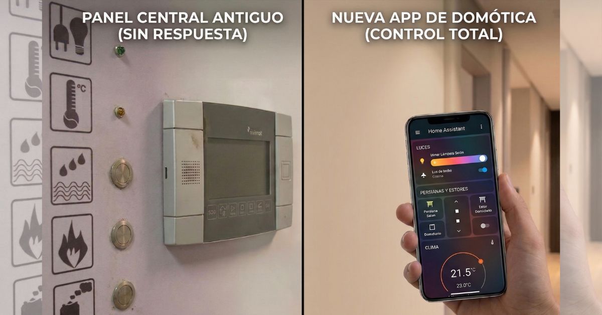 Para entender el problema, debemos mirar atrás. Hace años, el sistema Vivimat fue una solución pionera que muchos constructores integraron en promociones de viviendas nuevas. Era un sistema centralizado, dependiente de una gran pantalla táctil en la pared desde donde se controlaba todo el hogar.